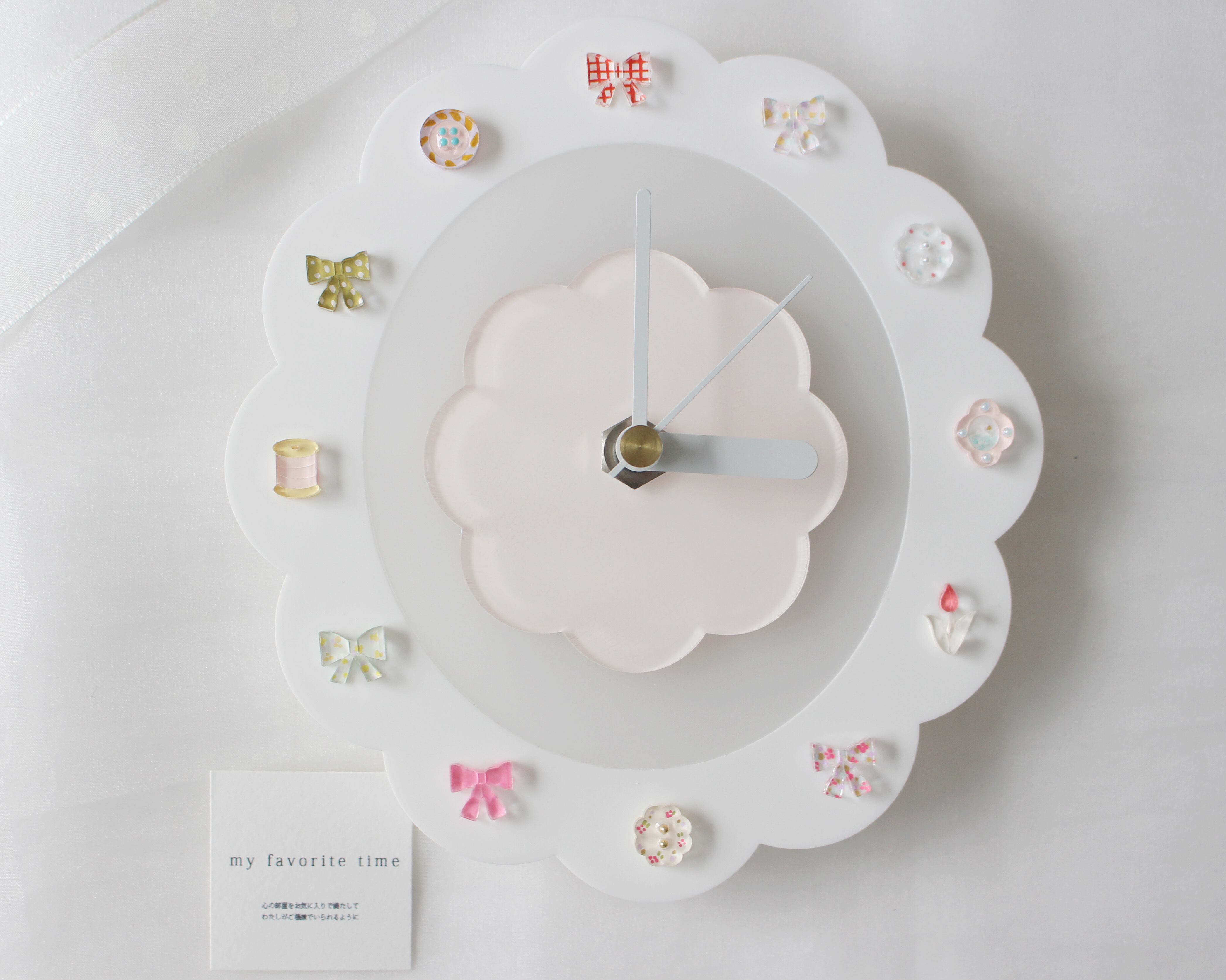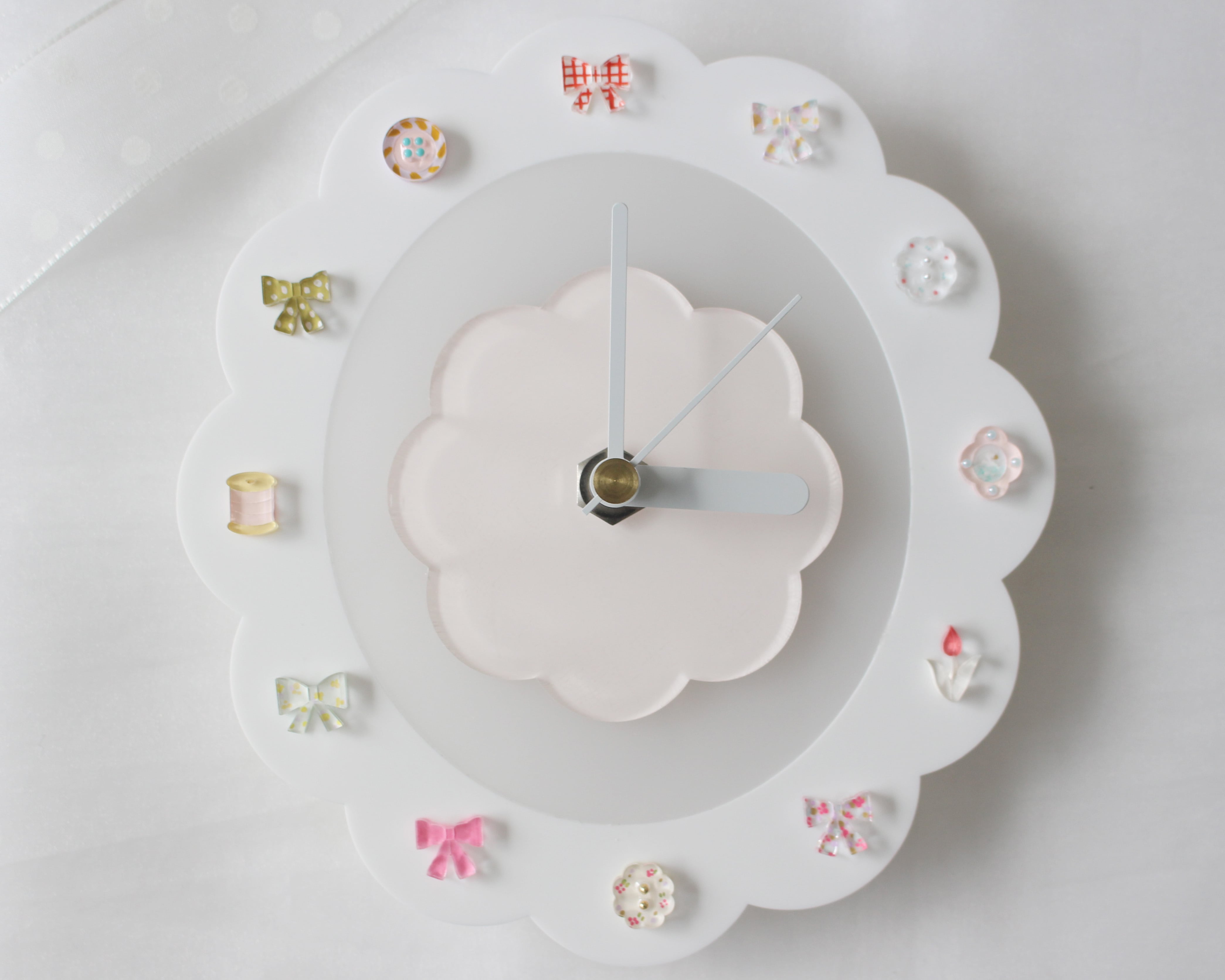 ※こちらの時計は、飾りをメインにおいて制作しており、