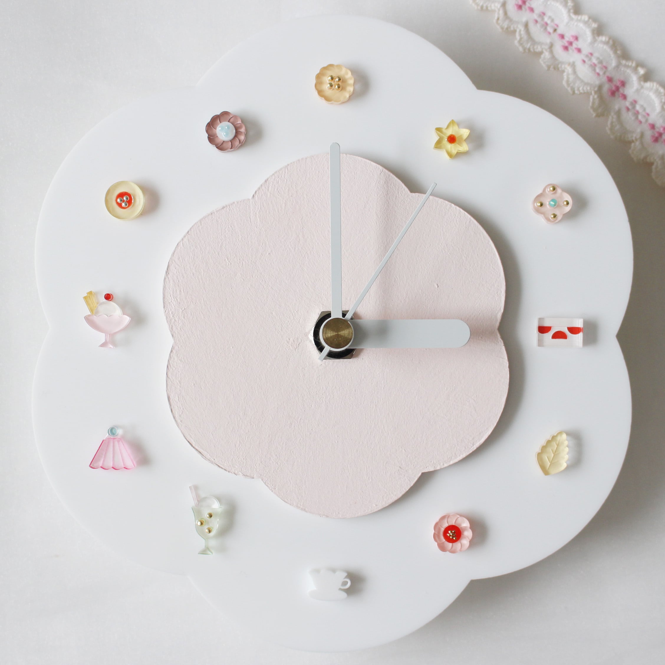 ※こちらの時計は、飾りをメインにおいて制作しており、