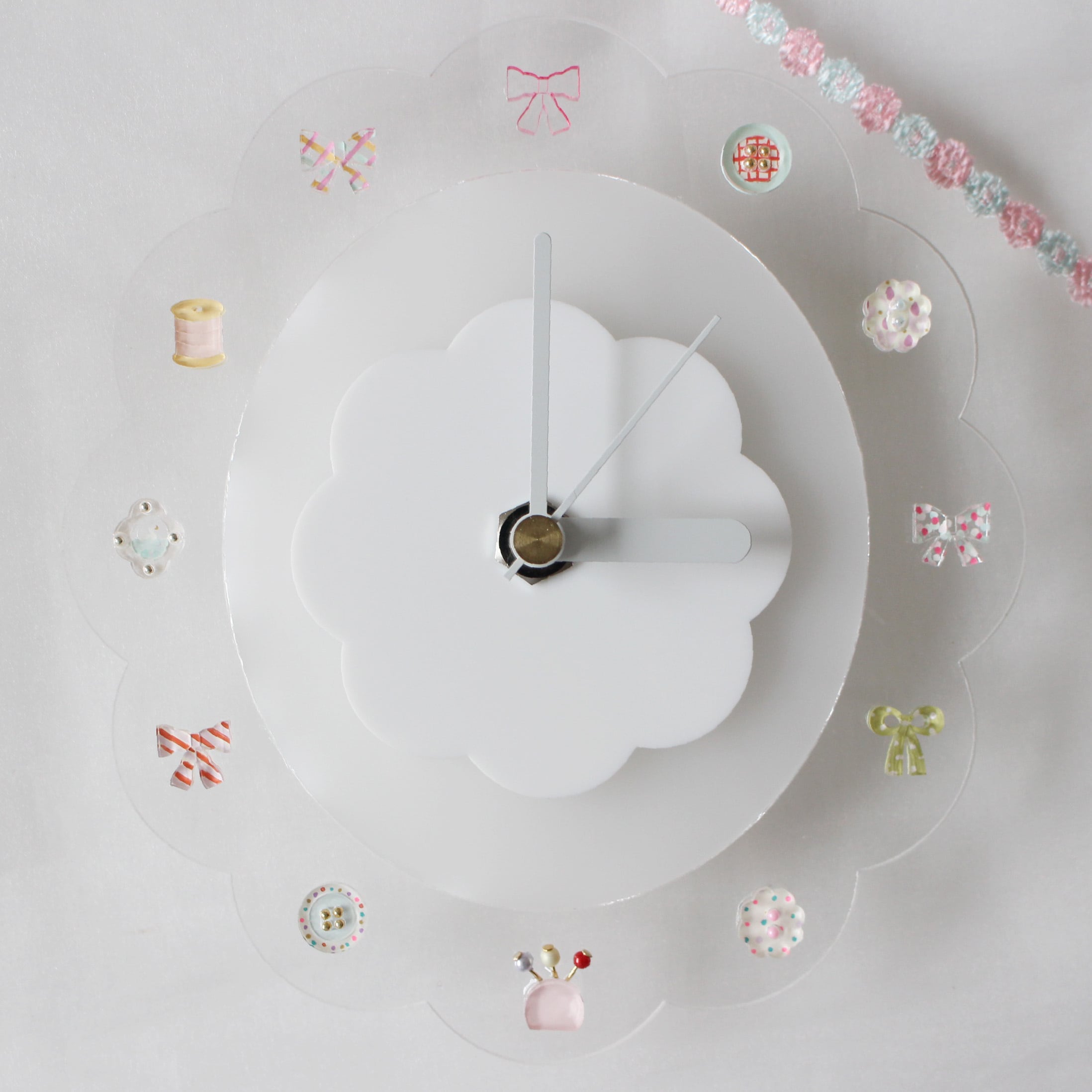 ※こちらの時計は、飾りをメインにおいて制作しており、