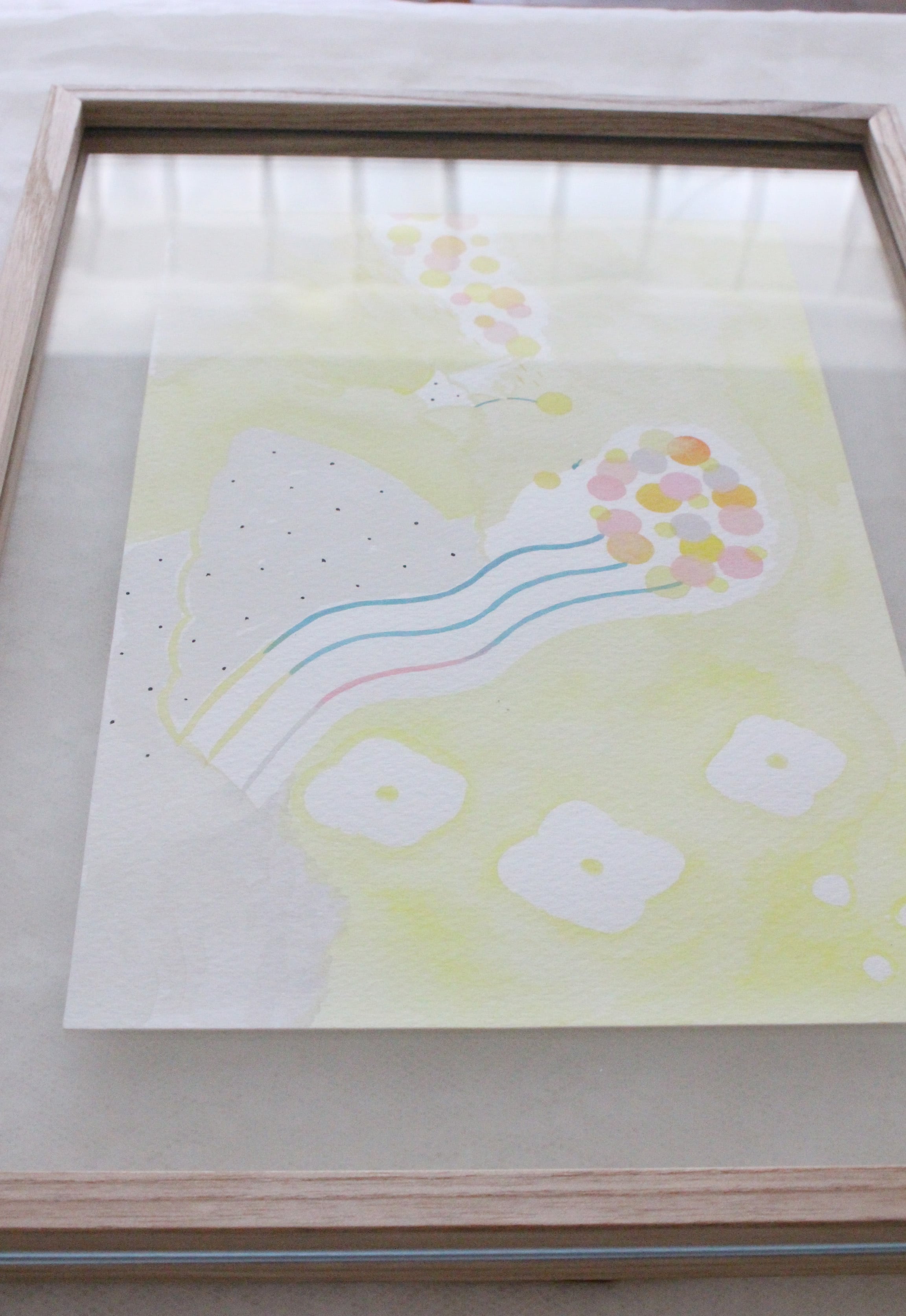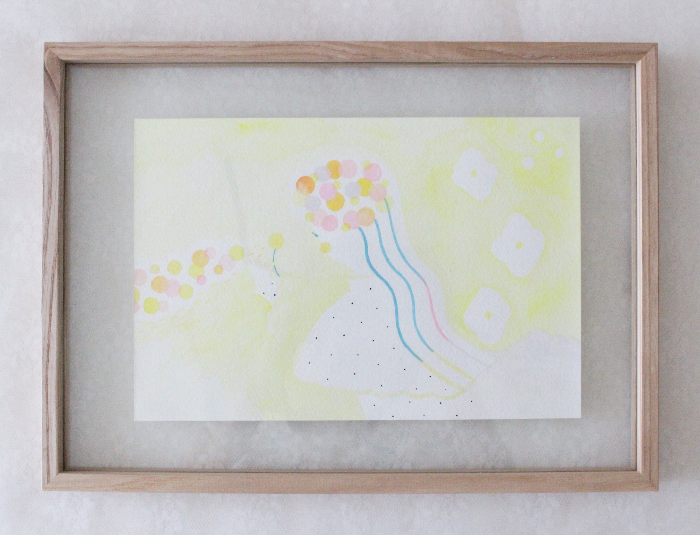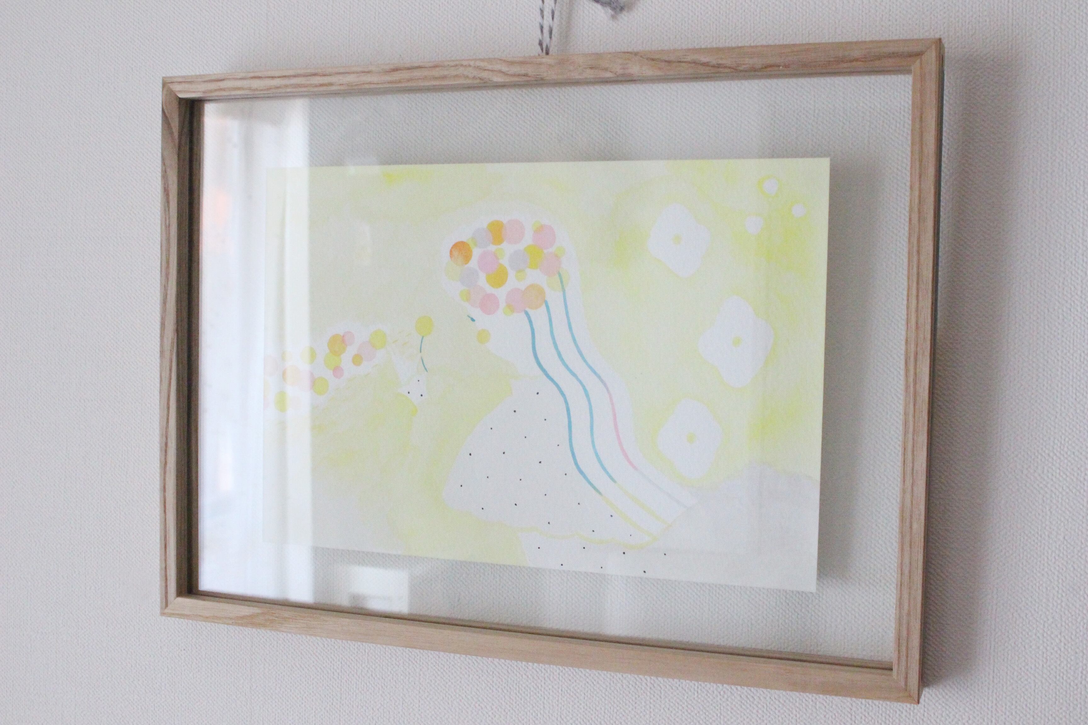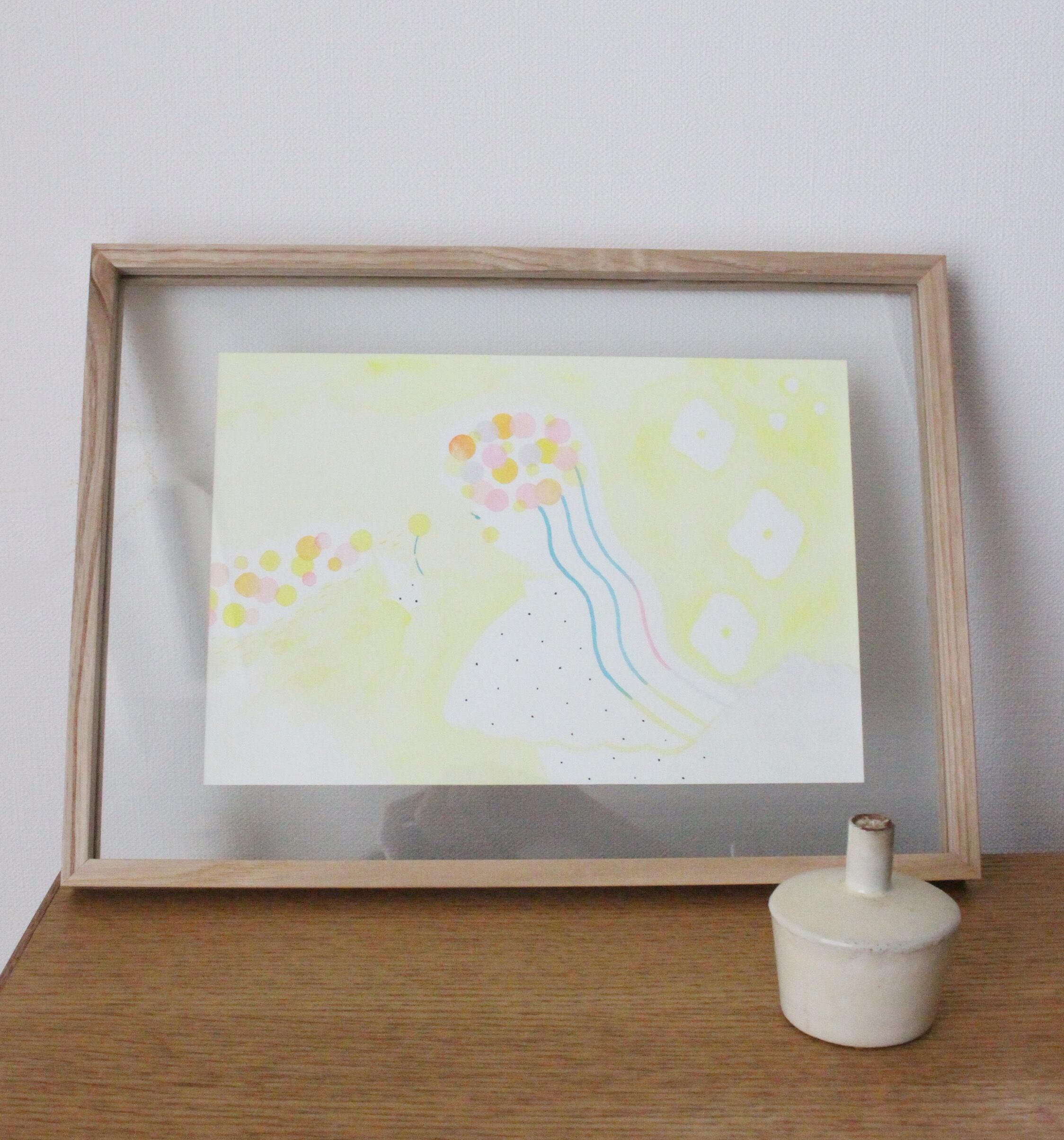 水彩でやさしく描いた絵をウッドフレームで