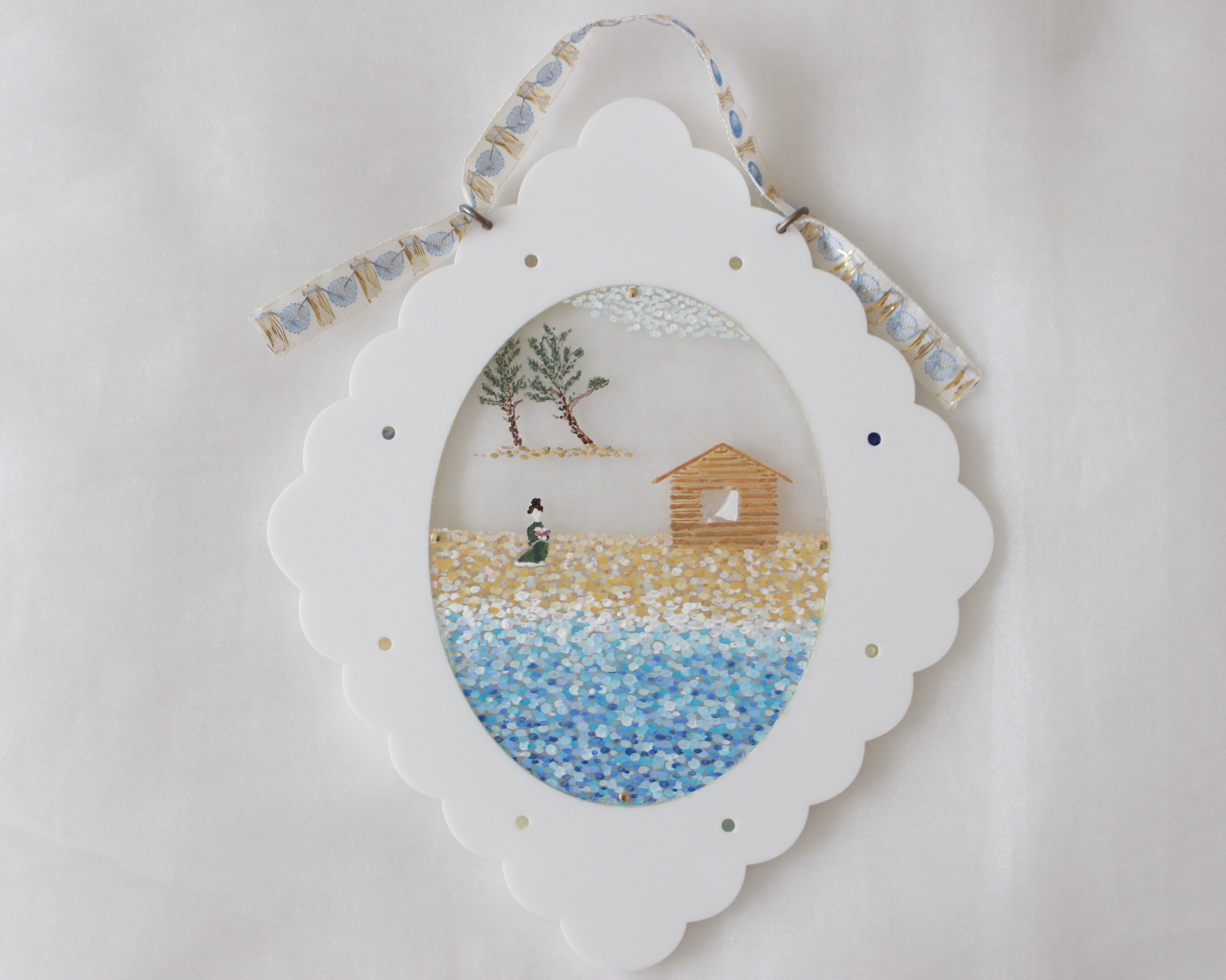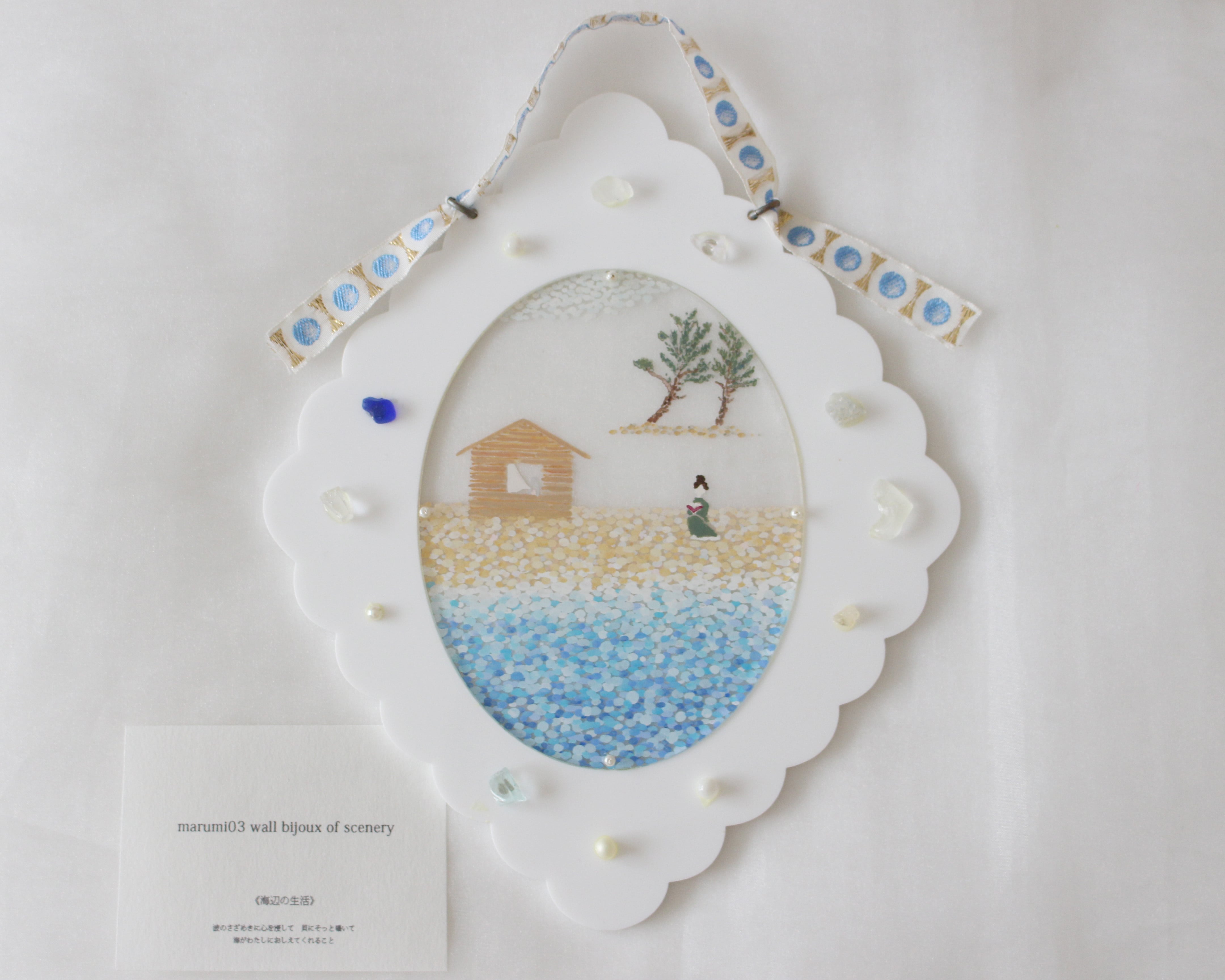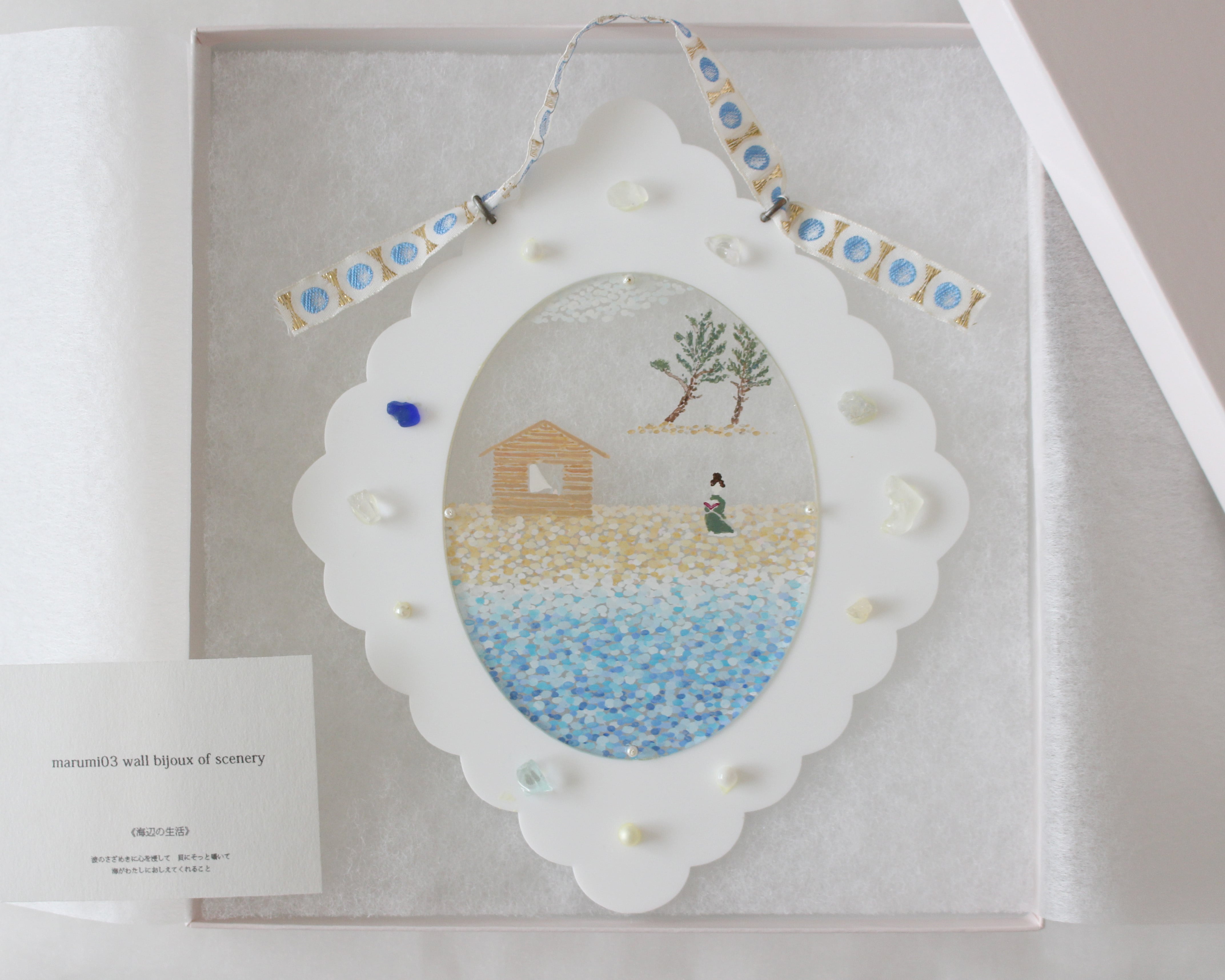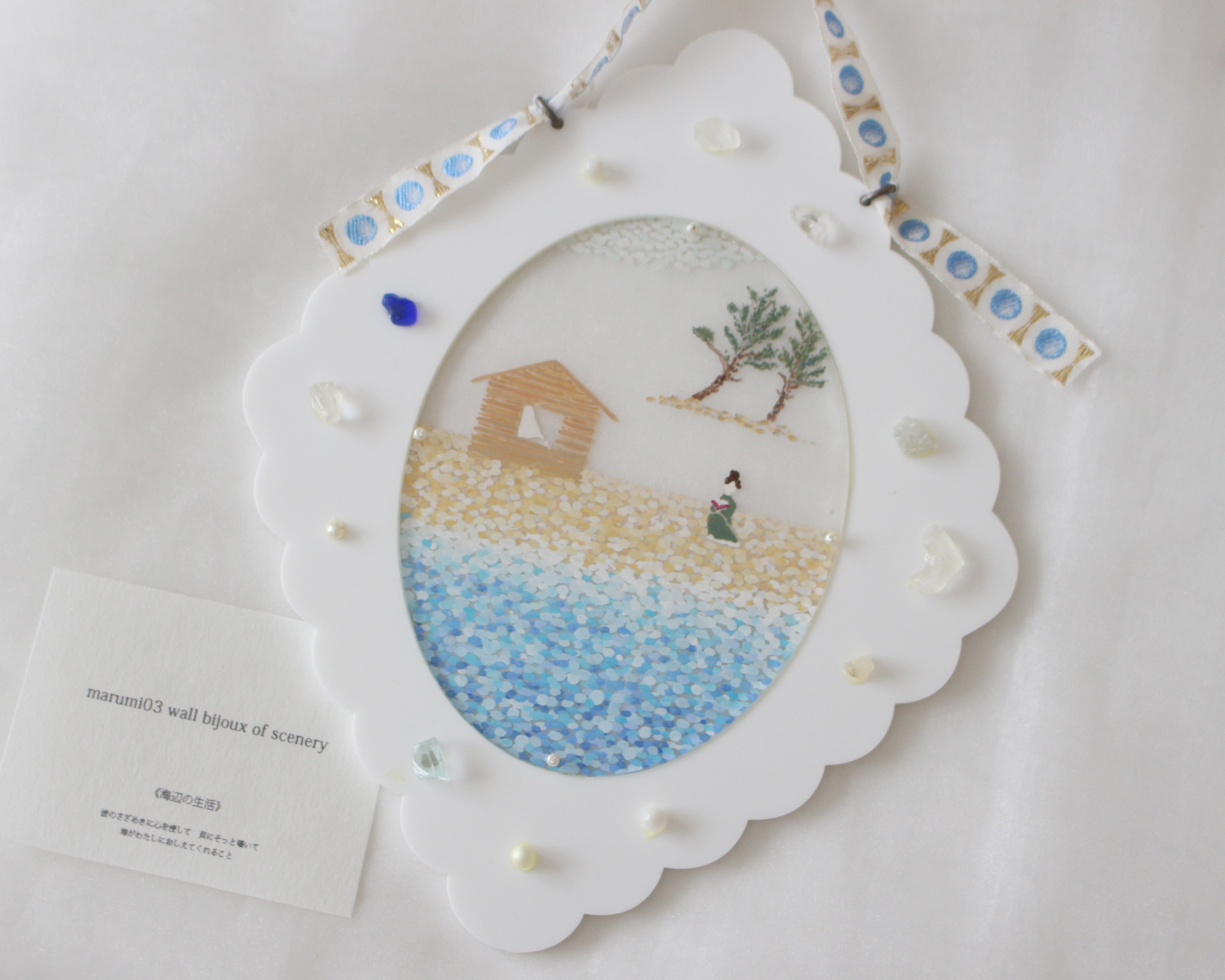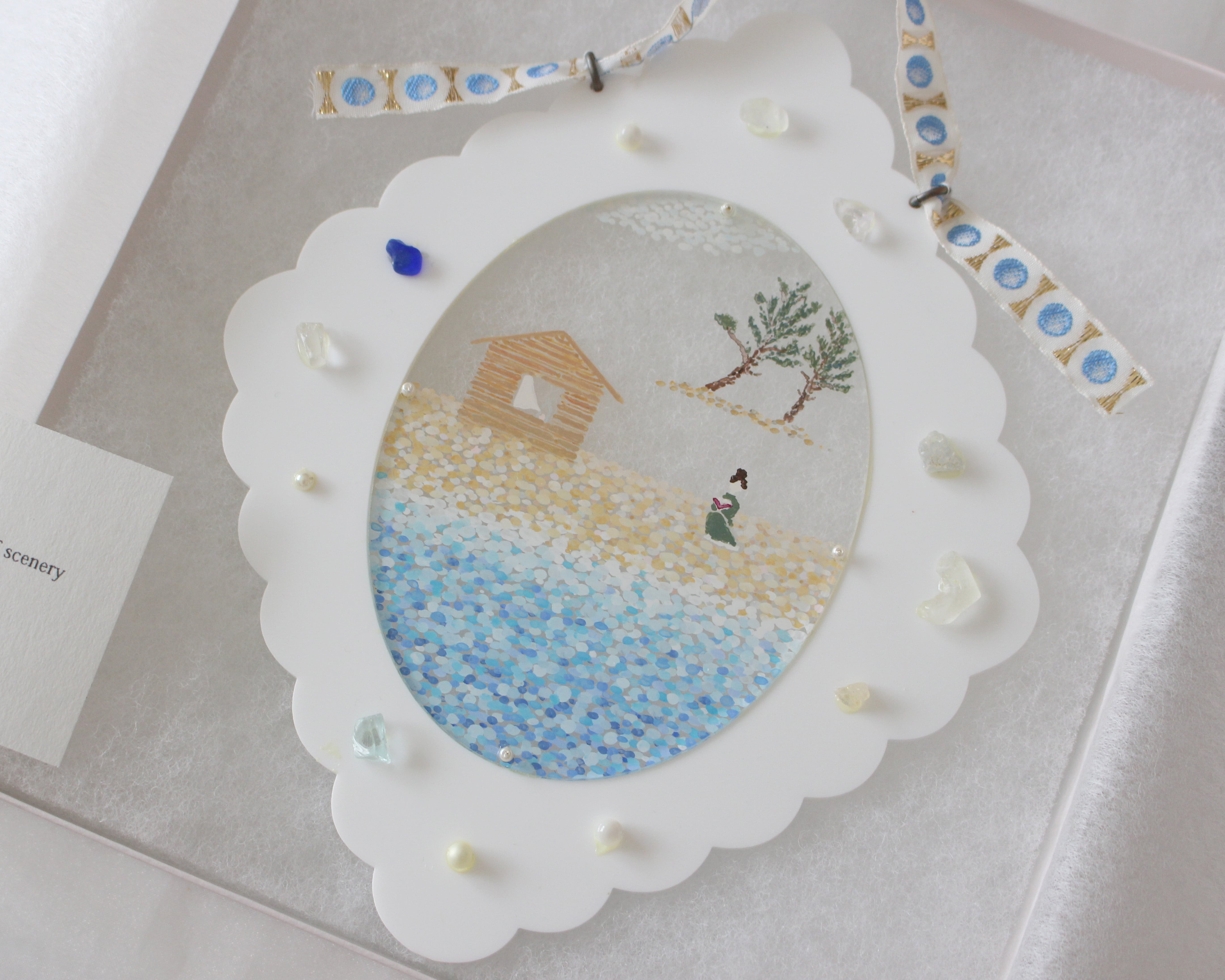 オリジナルの額には、隠岐・西ノ島の海辺で拾い集めたシーグラスを